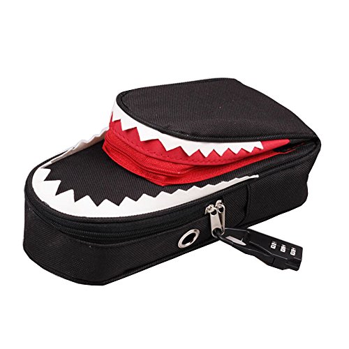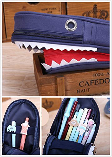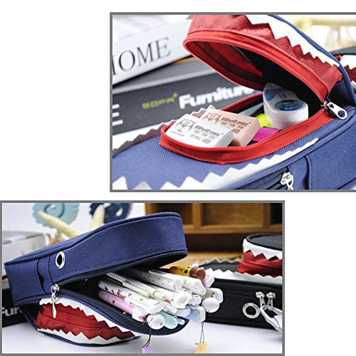 - SHARK 3D POUCH -- If you let the pencil bag upsidedown, you'll definitely see a fierce but cute shark. The zigzag decor is shark's teeth, the two matel loop on the sides is its eyes,and the red small bag is kinda like a tongue.Vivid shark with exquisite stitching, perfect gift for kids who is shark's big fan