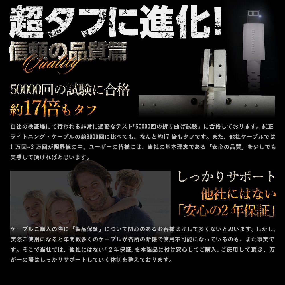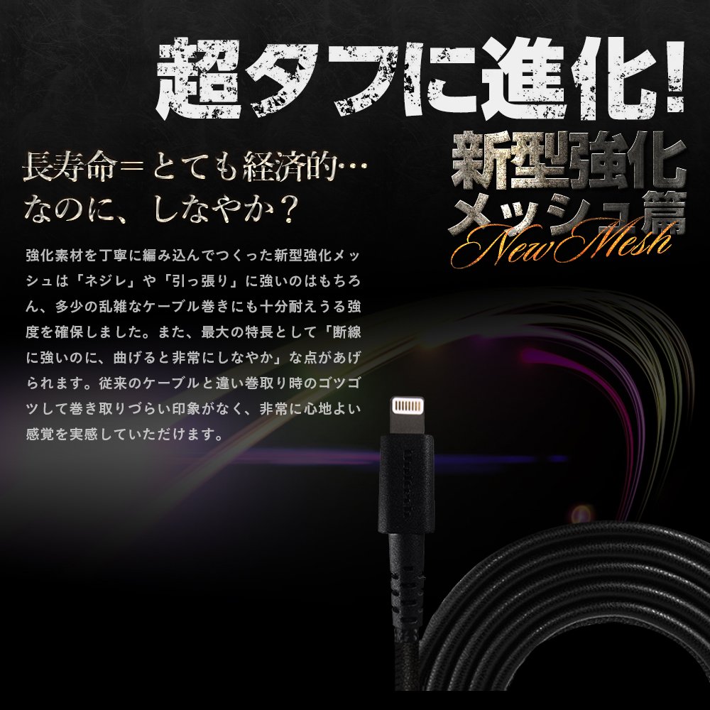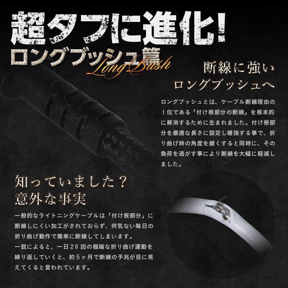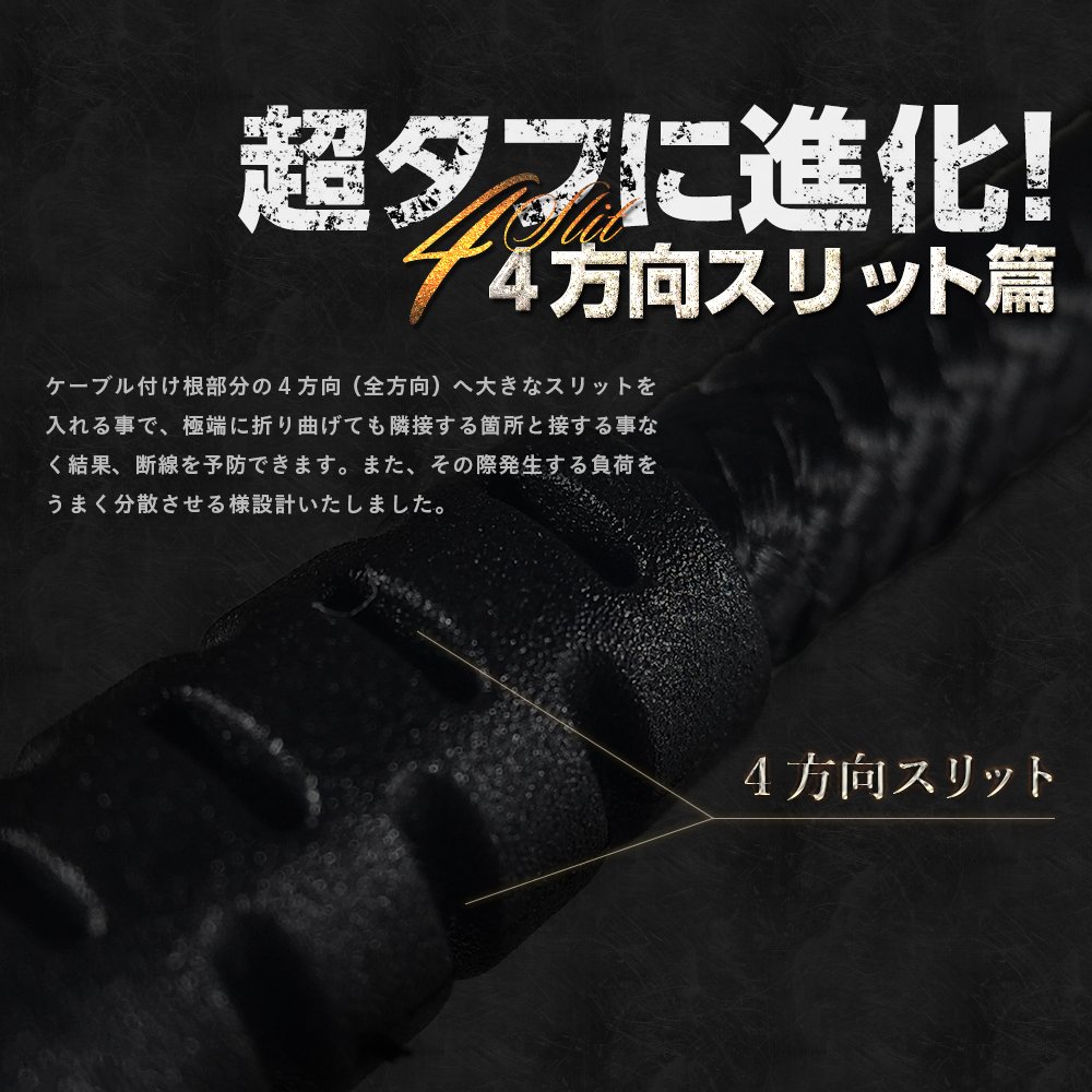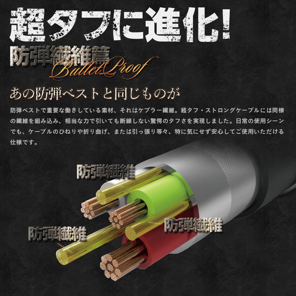 Super Tough Strong cable which combines durability and flexibility realized improved durability by adopting aramid fiber used for bulletproof vests inside.