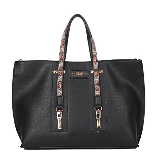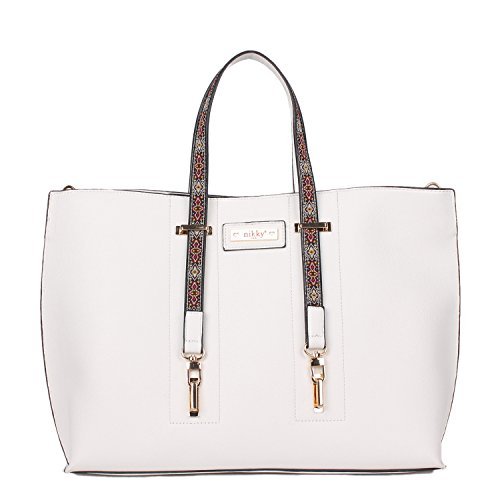 Studio : Nicole Lee Publisher : Nicole Lee Binding : Apparel Product Description Carry it all with this lightweight Nikky Ocypete shopper bag. Exterior Features: Made of high quality very finely marbled eco-leather. Tribal print inspired handles. Gold hardware featuring the signature Nikky logo nameplate on front. Flat base to keep structure. Includes one detachable and adjustable 41" - 46" long eco-leather shoulder strap and 6" handle drop. Interior Features: Snap closure with one large compartment and two zip-up pouches attached to each side. Cheetah print, smooth eco-leather lining. For cleaning, wipe with damp cloth. 0