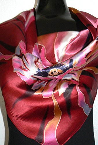 (silksalon)/Accessories/Scarves/DIRECT FROM USA/Jingjingart 100% Luxurious Charmeuse Silk Scarf Shawl Wrap Tropic Red A154