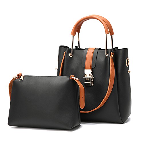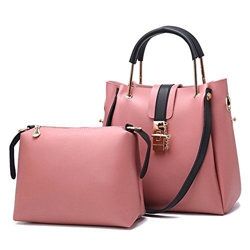 【2 PIECES HANDBAG SET】1 larger tote bag has 1 detachable smaller inner top zip bag as an organizer that can also be unclipped as a crossbody bag and the long strap will connect to either bag.