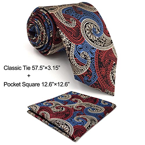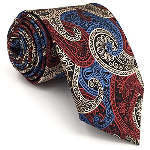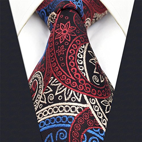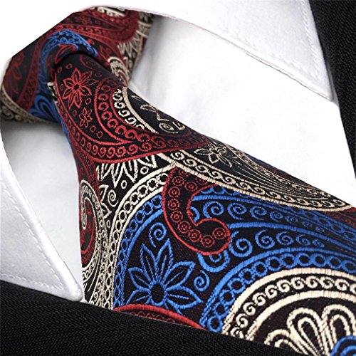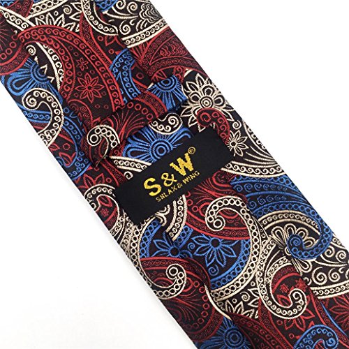 | ShlaxWing New Design Mens Neckties Paisley Blue Red White Ties For Men Silk |