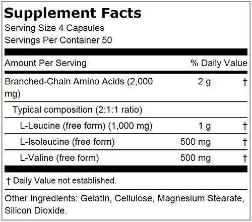 -. Feature : For Muscle Growth and Recovery / Isoleucine 500 mg / 2:1:1 Ratio of BCAAs / Valine 500 mg / Leucine 1,000 mg