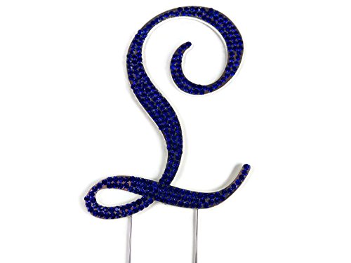 Monogram Blue Sapphire Rhinestone Cake Topper - Letter L