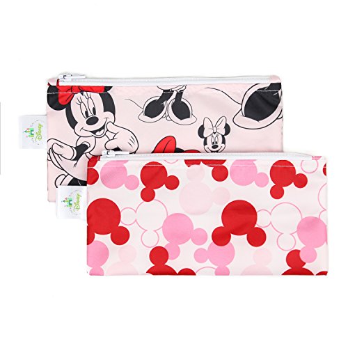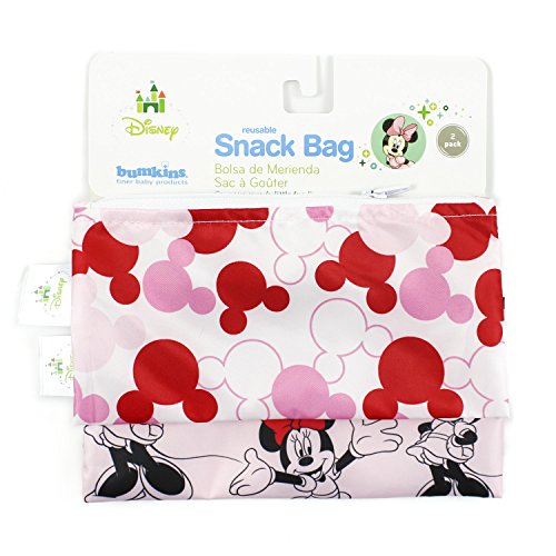Bumkins Disney Baby Reusable Snack Bag Small 2 Pack, Minnie Mouse (Classic/Icon)