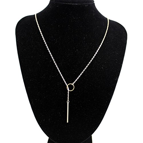 - Feature : Contracted Metal Ring design / Material: Alloy / Color: show as picture / Size: Stick length: 3.2cm/Chain length: 60cm / Package content: 1*women's necklace
