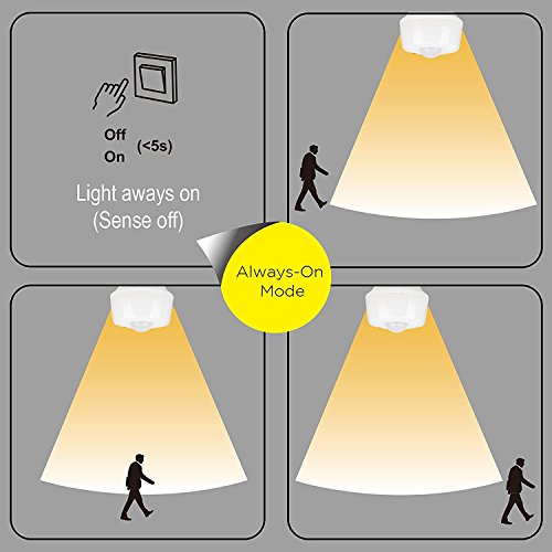 - Supports an“Always On” mode— by quickly switching the bulb off and on, once, youcan temporarily deactivate the sensor and use the bulb as a standard LED light.