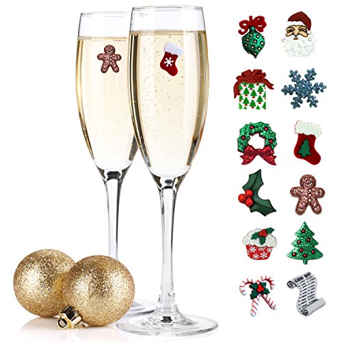 -. Title : Christmas Holiday Magnetic Wine Glass Charms & Cocktail Markers Set of 12 - Great Christmas Gift or Stocking Stuffer