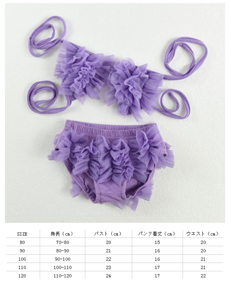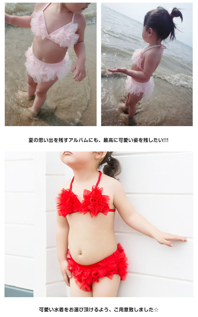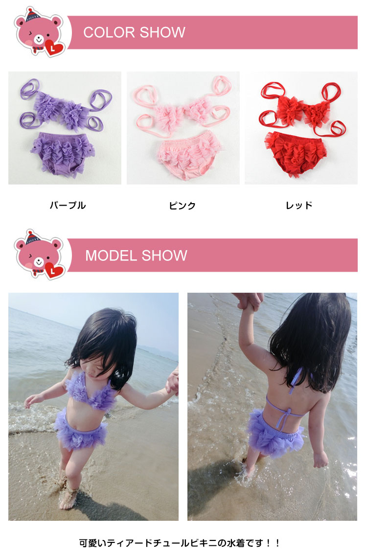 | 可愛いティアードチュールビキニの水着です!!ビキニー+パンツの2点セットです。可愛いわが子にはいつも可愛い姿でいてほしい!夏の思い出を残すアルバムにも、最高に可愛い姿を残したい!!!可愛い水着をお選び頂けるよう、ご用意致しました☆カラーもサイズも取り揃えておりますので、ご安心くださいネ♪ | |
