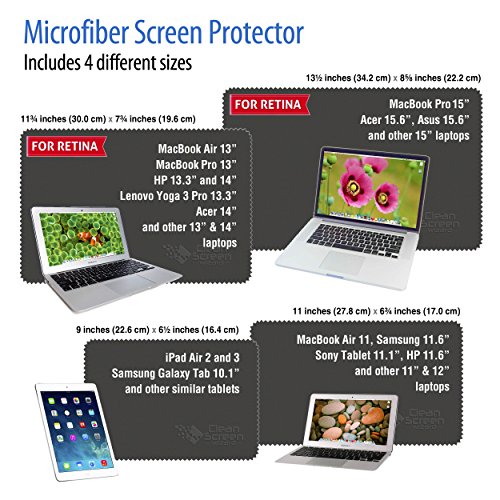 Microfiber Screen Protector & Cleaner - For Laptops iPad & MacBook Air - Pro 11" 13" 15" & Retina - Best 4 Pack Large Cloth Keyboard Covers in Vinyl Pouches + Cleaning Sticker by Clean Screen Wizard