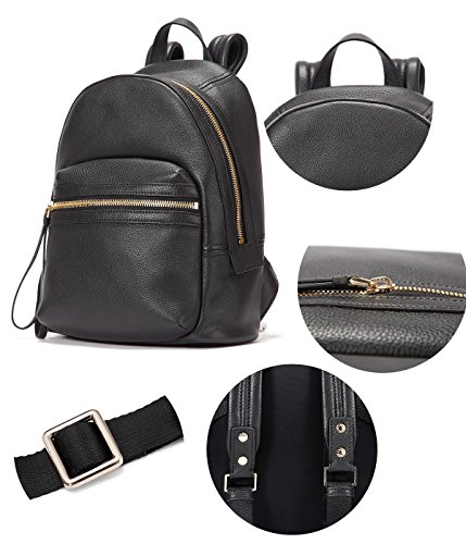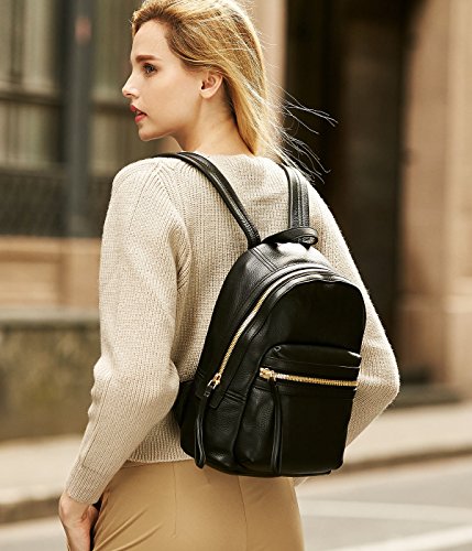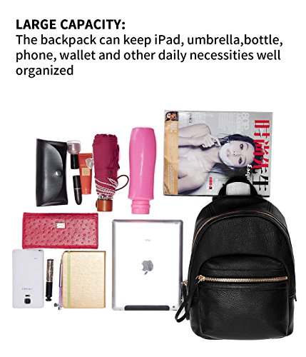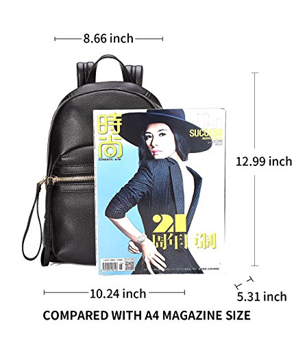 A fashion collection of women backpack, made of high grade natural texture genuine leather, which feels luxury, soft and comfortable. It's also a brilliant organizer, large capacity with 1 external zipper pocket, 1 main pocket, 1 interior zipper pocket and 2 interior slit pockets, which can keep your iPad, umbrella, bottle, phone, wallet and other daily necessities well organized. Dimensions: 10.24"L x 5.31"W x 12.99"H, big enough for your all daily outfits (can not put in laptop), and it is just the perfect size as a casual backpack.