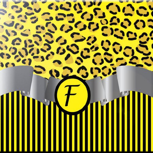 Rikki Knight RK-6intilec-2300 6" X 6" Letter "F" Yellow Leopard Print Stripes Monogram Design Ceramic Art Tile