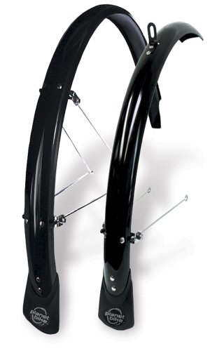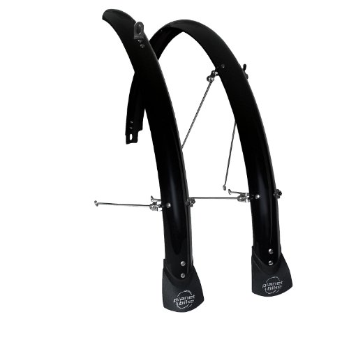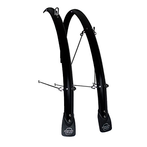 Amazon.com Product Description When the weather turns ugly, Planet Bike's fenders offer full protection from the rain, sleet, and snow. The Hardcore road front and rear fenders are made of unbreakable Superflex all-weather polycarbonate, a super-sturdy material that looks great and stands the test of time. The slick mudflaps, meanwhile, are double-riveted for durability and will keep you dry for years to come. And thanks to the pre-installed, quick-adjusting stainless-steel hardware, the fenders are remarkably easy to mount. Shipped with all the necessary hardware for virtually any road bike, the fenders measure 35 mm wide and are backed by a limited lifetime warranty. About Planet Bike In November of 1996, Planet Bike was founded in Madison, Wisconsin. In many ways, Planet Bike began as a social experiment that dedicated itself to doing business in a different way. Instead of being just another company that develops and sells products with profit as its end goal, Planet Bike wanted to help bring about positive change for people, their communities, and the environment. Despite being a simple machine, the people at Planet Bike have always believed that the bicycle has great potential to help improve the world and the lives of the people in it. From the start, they have embraced an alternative corporate purpose which seeks to help get more people on bicycles by making communities friendlier places for the self-propelled. By donating 25% of company profits to causes that promote and facilitate bicycle usage, Planet Bike hopes to make an impact. Social experiments aside, Planet Bike was born from the heart of a cyclist with a goal of making innovative, high quality, and practical bicycle accessories. Simply put, they strive to design and develop the best bicycle products in the world. In the company's short ten year history, they have made important product innovations within the bicycle industry. Advancements include the 4-line computer which is now a standard in the industry and the world's first self-contained HID light. Not bad for a company that ten years ago started as a one man operation. Today, while still a small company, Planet Bike continues to evolve and improve their product line with the goal of always striving to build accessories that make it easier for people to ride their bikes. Since 1996, Planet Bike's financial support of the grassroots bicycle movement has totaled $500,000. By 2010, they have made a goal to donate $1 million to organizations that are dedicated to making America a friendlier place for cyclists. 0