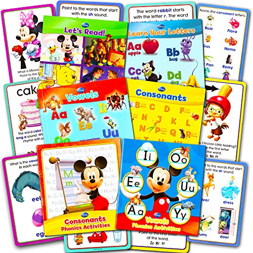 Studio : Disney Educational Publisher : Disney Educational Binding : Toy Product Description Disney Phonics Books and Flash Cards Box Set -- 4 Phonics Learn to Read Books, 2 Learn to Write Books and Jumbo Flash Cards (Disney Educational Toys). Disney characters including Mickey Mouse help your child learn to read and write. Includes 4 Disney phonics books: Learn Your Letters, Vowels, Consonants and Let's Read! These phonics books are for beginning readers (preschool, kindergarten, 1st grade). Includes 2 Disney phonics learn to write activity books. Each learning to write book for kids has wipe off pages (pen included) and can be used again and again. The Perfect compliment to Disney reading books! Includes 24 large Disney phonics flash cards for kids (preschool, kindergarten, 1st grade). A great teaching resource for practicing letter sounds and reading. Officially licensed Disney educational toys and games products. Disney favorites, including Mickey Mouse and Disney Pixar characters, make learning fun. These Disney phonics flash cards, learn to read books and learn to write activity books are the perfect gift for any child! Great for Disney party supplies and party favors. 0