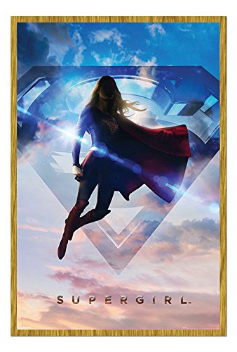 -. Title : Supergirl In The Clouds Poster Magnetic Notice Board Oak Framed - 96.5 x 66 cms (Approx 38 x 26 inches)