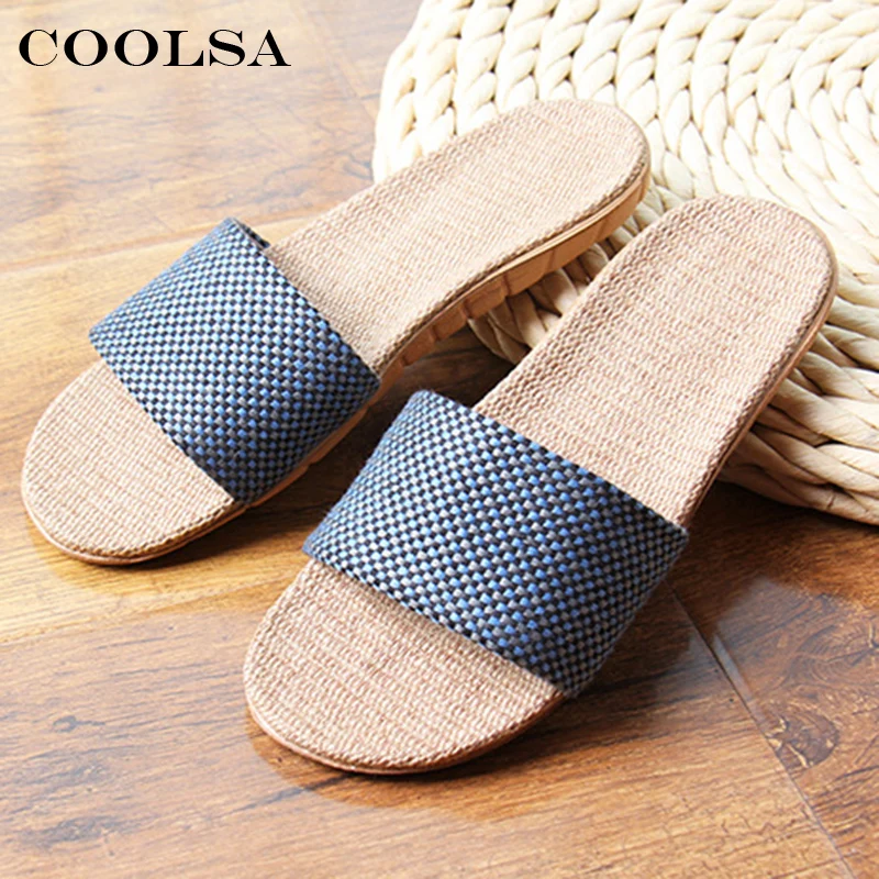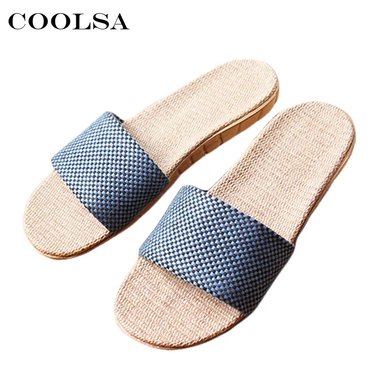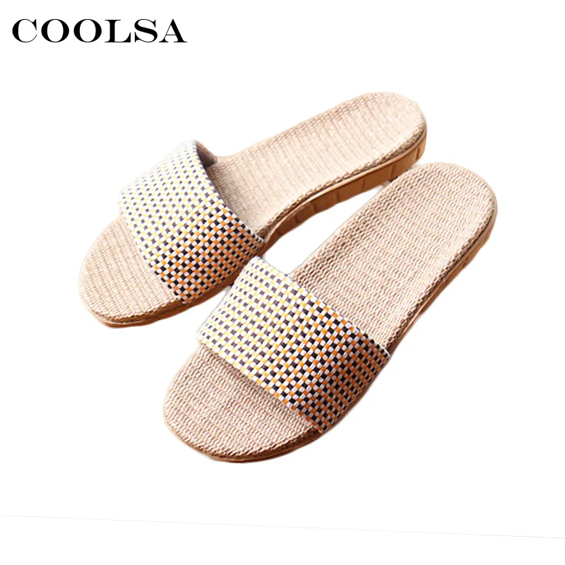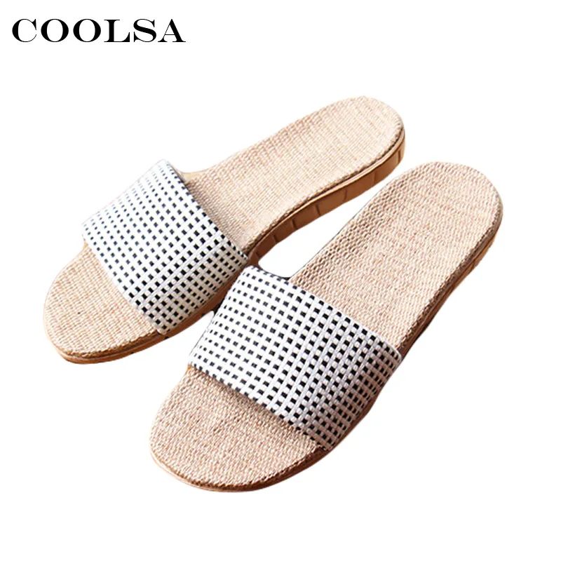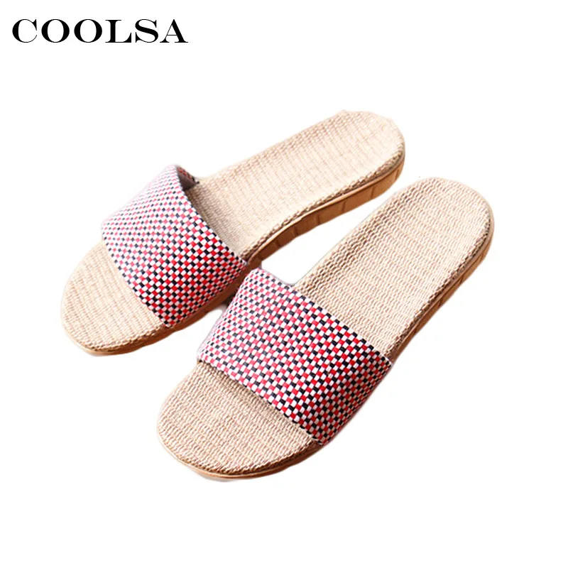 Women linen slippers:Fashion canvas plaid pattern