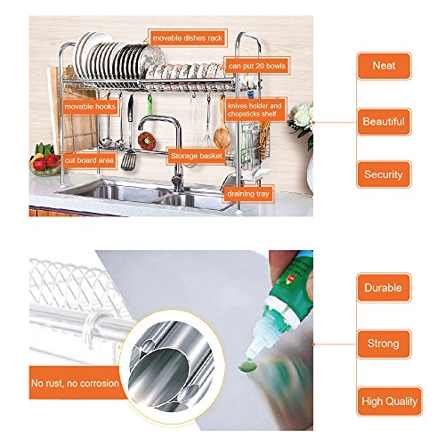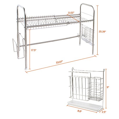 NEX Dish Drying Rack Stainless Steel Dish Storage with Chopstick Holder Rrustless(Single-layer)