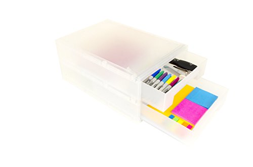 Stylio 2-Tier Desk Organizer and Document Tray Stylish Translucent White PP Storage Box Drawer for Documents, Stationery, Office, Teaching, School Supplies and Household Items
