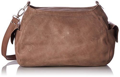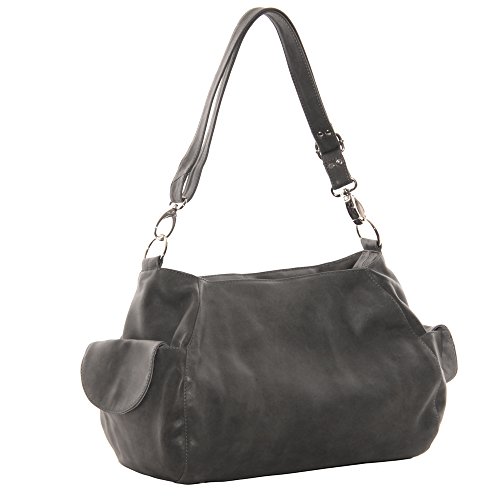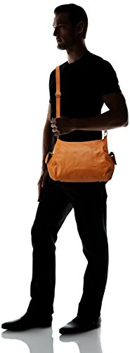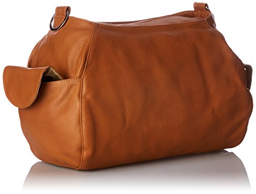 Top-zip opening to main compartment with an interior zip-pocket and open phone pocket. Two side pockets with flap magnetic snap closures. Long adjustable strap to wear as a cross-body bag or shoulder bag.