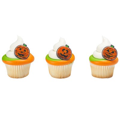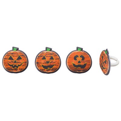 24 Pack Chalk-O-Lantern Pumpkin Halloween Cupcake Rings Toppers