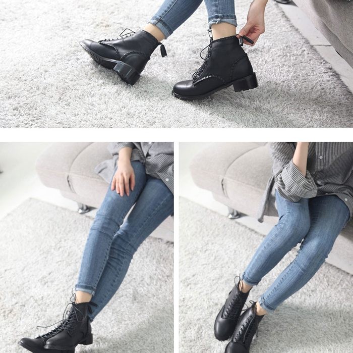 商品名:ショートブーツ レディース レースアップ 2017 秋冬 ファッション 靴 婦人靴