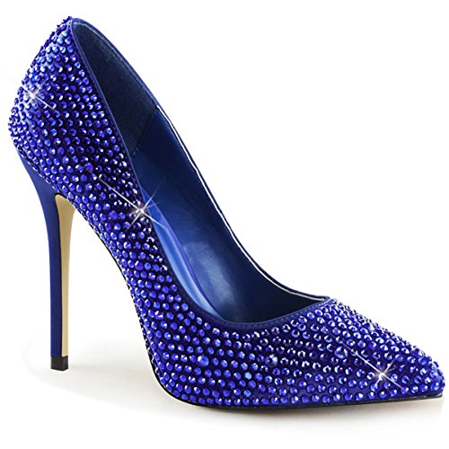 Product Description Step into these rhinestone covered pumps and instantly feel glamorous. These blue satin shoes pair well with a classy dress.0