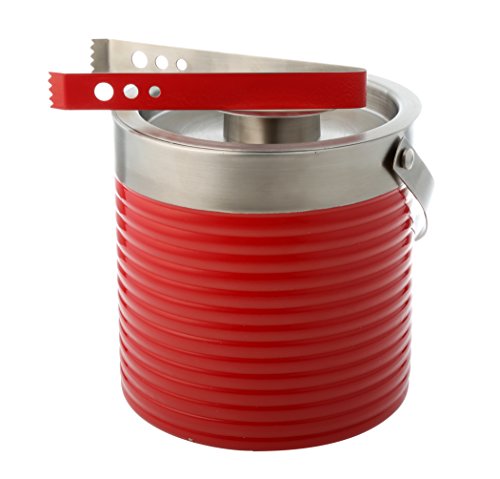 -. Title : Fiesta Ribbed 3 quart Double Wall Ice Bucket & Tongs, Scarlet