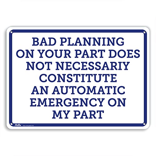 PetKa Signs and Graphics PKFS-0037-NA_10x7 "Bad Planning On Your Part Does Not Necessarily Constitute An Automatic Emergency On My Part" Aluminum Sign, 10" x 7", Blue on White