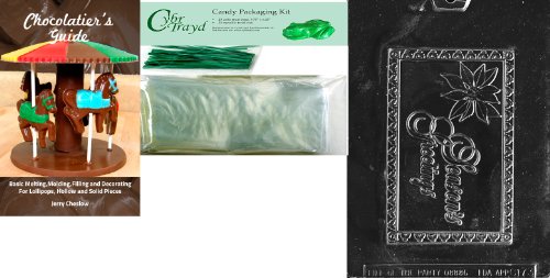 Cybrtrayd Seasons Greetings with Poinsettia Chocolate Mold with Chocolatier's Bundle of 25 Cello Bags, 25 Green Twist Ties and Chocolatier's Guide