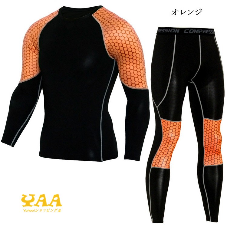 上下セット サイクリングジャージ アンダーシャツ 長袖 丸首 ロングタイツ メンズ アンダーウェア コンプレッションウェア