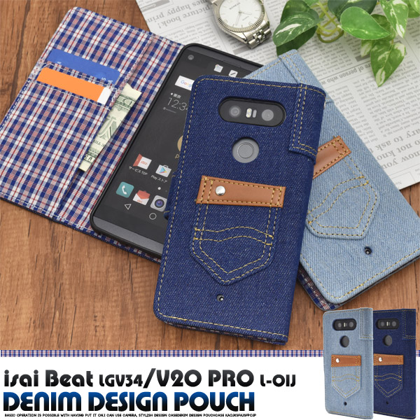 使いやすい手帳型ケース! isai Beat LGV34/V20 PRO L-01J用デニムデザインケースポーチ | | | |