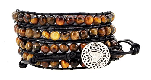 -. Title : Tiger Eye Stone Beads Love Heart Wrap Leather Bracelet