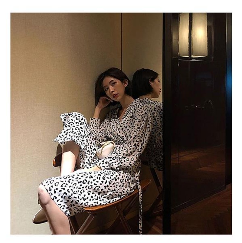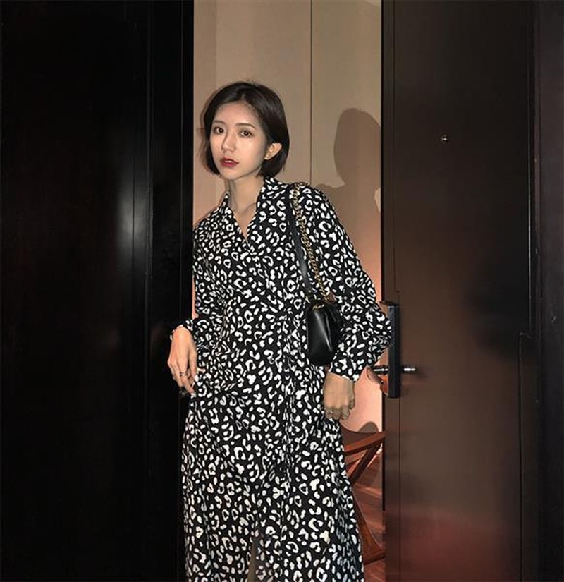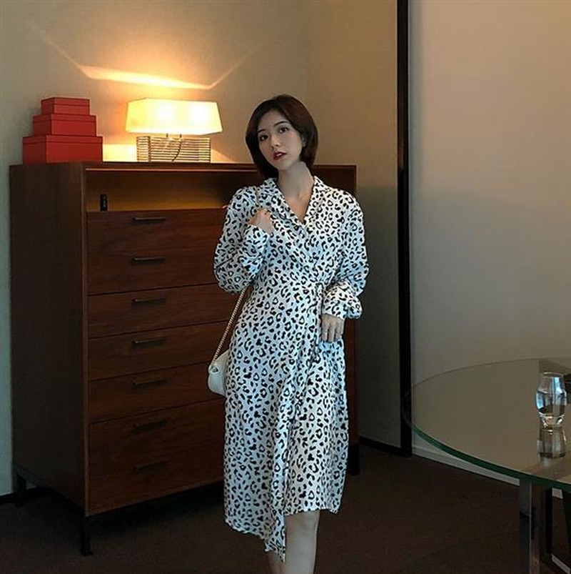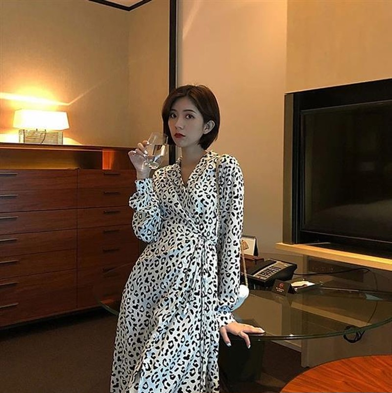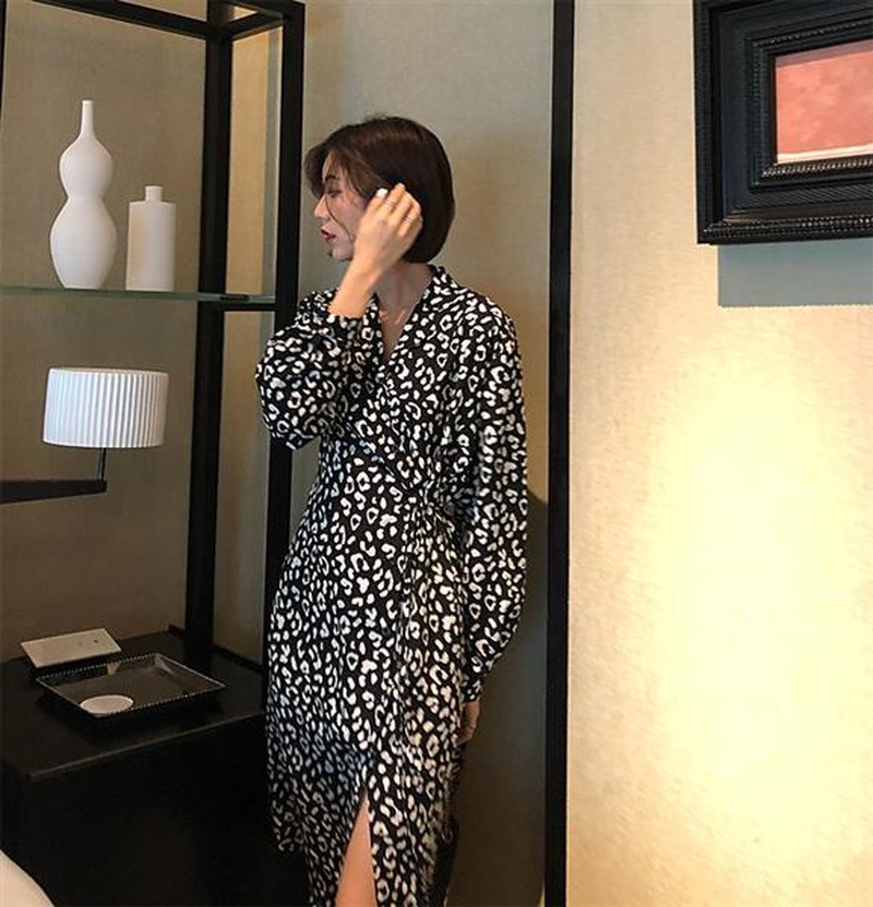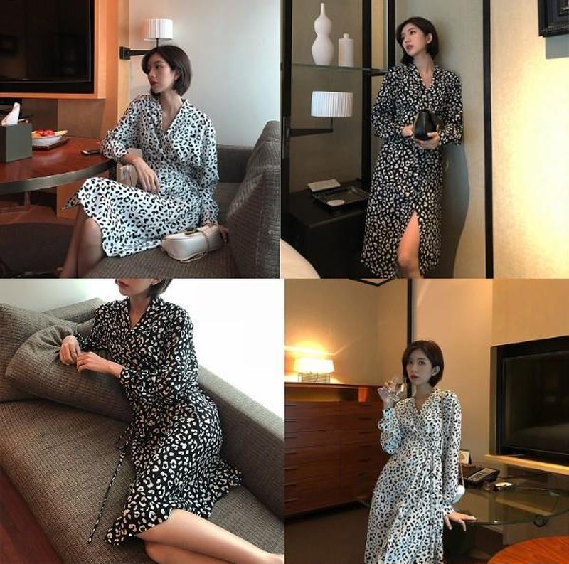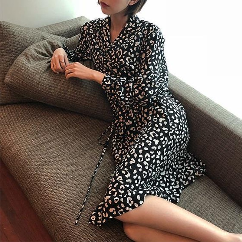 ♢ポイント♢ レオパード柄の長袖ワンピースです。 カシュクールにアシンメトリーのデザインがお洒落なアイテムです♪