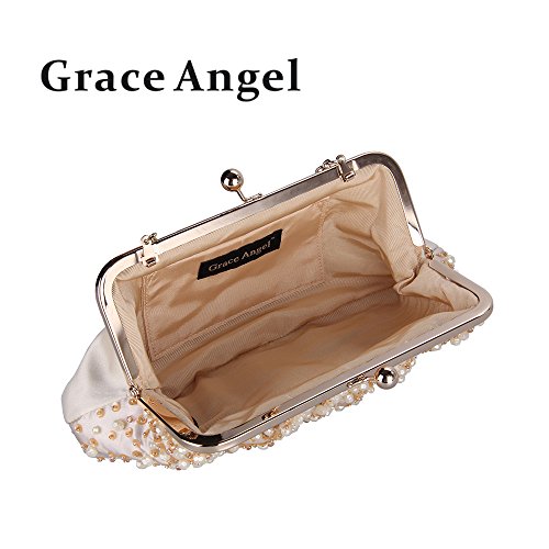 Product Description Grace Angel,a women's fashion handbag collection from the U.K., embodies elegance,style,fine details,and quality design.Inspired by the stylish European culture. Grace Angel strives to create a collection to meet the needs of the most graceful women,while adding a hint of mystery. It made from satin fabric. Front of bag are some sparkling sequins and beads. Kiss-lock closure is convenient to use and keep your valuable things inside. Lining can hold some small items, like phone, lipstick and some other small items. Comes with a concealable silver chain for use as a shoulder bag or cross body bag. Suitable for party, ball and dating. Approximate Dimensions:11.2"L×6.30"H×2.76"W (28cm×16cm×7cm), Silver chain 45.67" drop (116cm). Note: Different people with different measurement,the product may exist 2-3cm measurement errors. Due to monitor variations colors may appear slightly different. 0