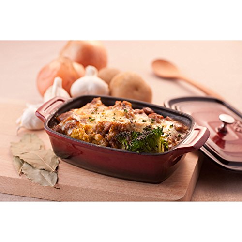 La Cuisine 22 Oz Mini Rectangular Enameled Cast Iron Covered Dutch Oven, Red