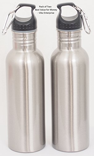 Best Value Pack of Stainless Steel BPA Free Water Bottles by Vibz Enterprise with Free Carabiner and Leak Proof Cap, Hygienic, Durable and Ecofriendly Hydration Source for Sports and Outdoor Activity