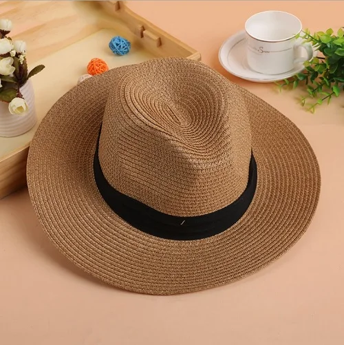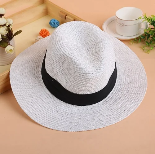 | [해외]2016 NewFashion 여름 캐주얼 남녀 해변 트릴 큰 가장자리 재즈 태양 모자 파나마 모자 종이 밀짚 여성 남성 캡 블랙 리본 |