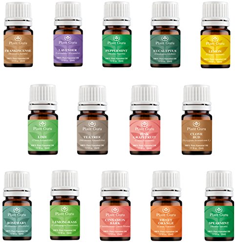 -. Title : Essential Oil Set 14 - 5 ml. Pure Therapeutic Grade Includes Frankincense, Lavender, Peppermint, Rosemary, Orange, Tea Tree, Eucalyptus, Grapefruit, Lemon, Lime, Clove, Spearmint, Lemongrass, Cinnamon