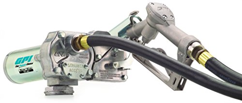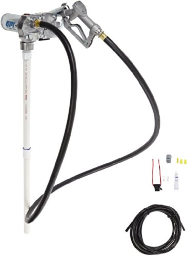 GPI 110000-107, M-150S-EM Aluminum Fuel Transfer Pump, 12-VDC, 15 GPM, 0.75-Inch Manual Unleaded Nozzle, 0.75-Inch X 10-Foot Hose, 18-Foot Power Cord & Adjustable Suction Pipe