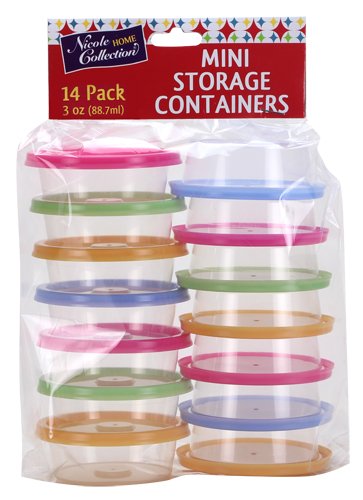 Nicole Home Collection 02047 Mini Round Containers with Neon Lids, 3 oz, Multicolor