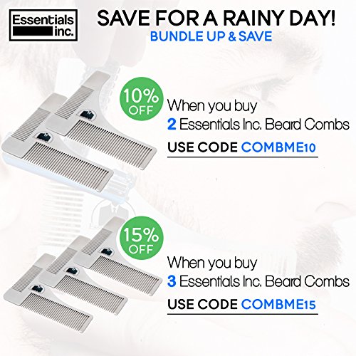 ? Dual Combs - Two grades of combs in ¾" and 1" to suit your beard type, thick or thin. ? Laser Cut Stainless Steel - Precision lightweight laser cut metal construction makes our Beard Shaping Tool stronger and more portable than the rest! ? Intelligent Design - In addition to getting the perfect line each time, our Beard Shaping Tool's versatile design allows for clean trimming in both beard and neck areas! ? Universal Use - The Essential Inc. Beard Shaping Tool works with your favourite razor or shaver. No need to change your routine, just enhance it! ? Travel Friendly - Super strong, flat design makes travelling with the perfect trim a breeze! Simply toss it in your grooming travel kit with no fear of damaging it! Who knows, might make a good bookmark too!
