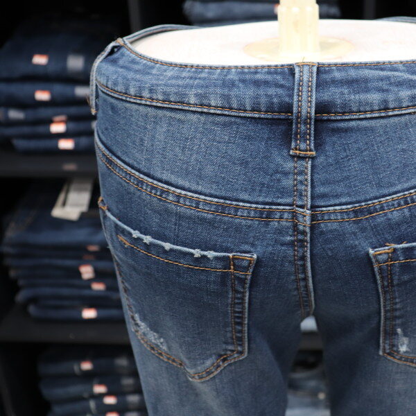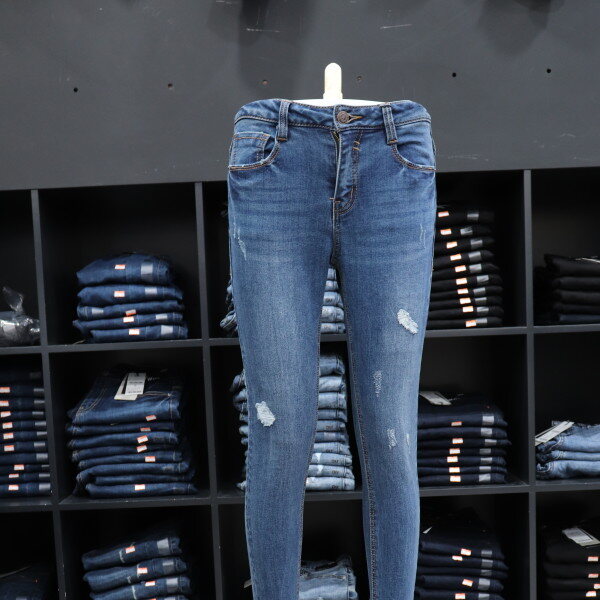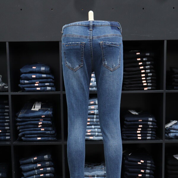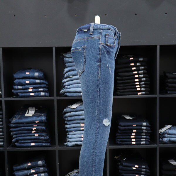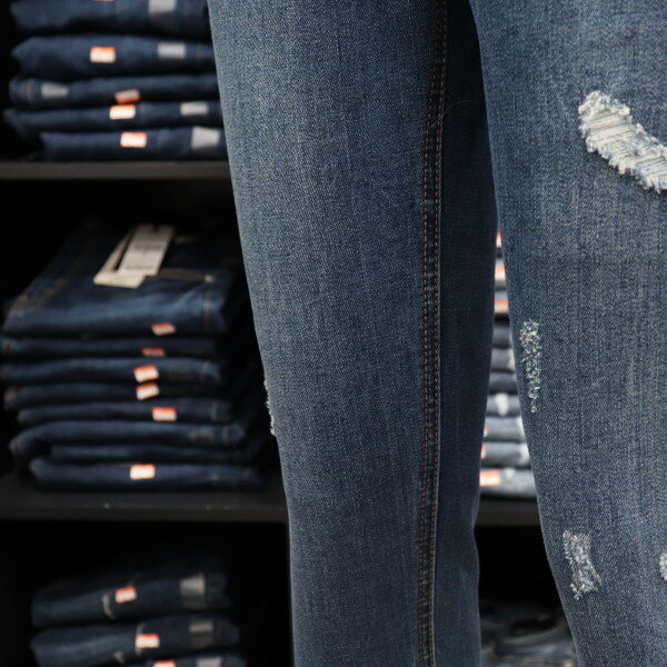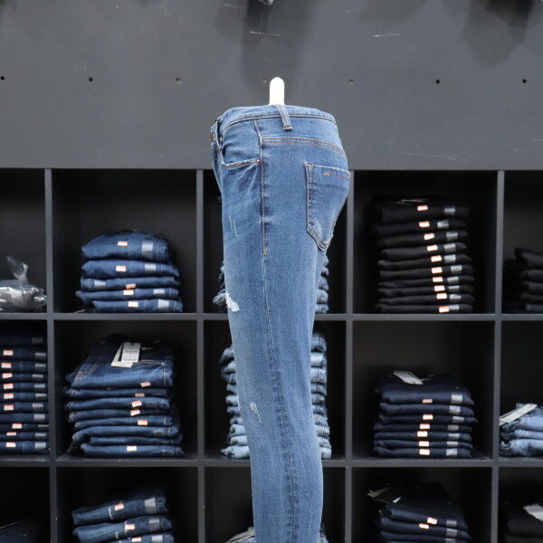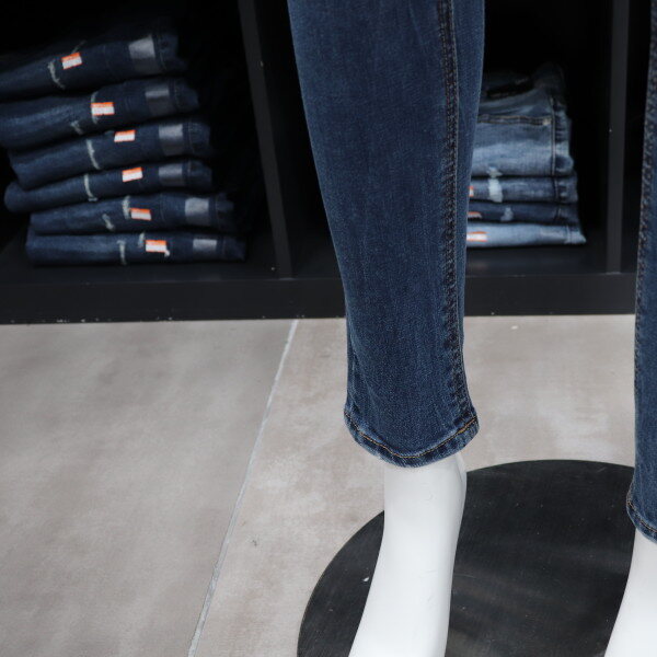 겟유즈드의 차분한 미디엄 톤의 밑위가 편안한 기모 컴포트 라이즈 스키니 핏 데님입니다.겨울에도 구제 데님을 즐길 수 있도록 구제부분에원단을 덧대어서 디자인한 제품입니다.