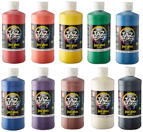 Van Aken 50510 Jazz Water Soluble Sparkling Tempera Paint Set, 1 pint Squeeze Bottle, Assorted Opaque Gloss Color