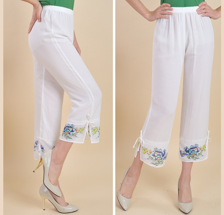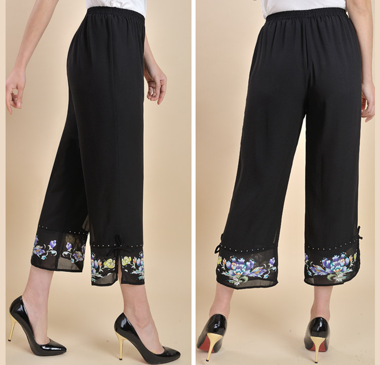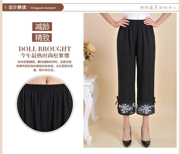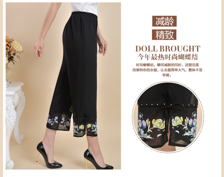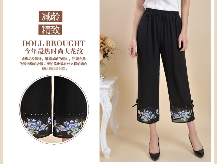 新款中老年女装夏装九分裤妈妈装大码宽松雪纺裤高腰松紧休闲裤子