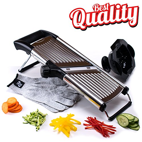 [Upgraded] Mandoline Slicer with FREE Cut-Resistant Gloves and Blade Guard – Adjustable French Fry Cutter and Vegetable Slicer, Food Slicer, Vegetable Julienne – Premium Stainless Steel Design