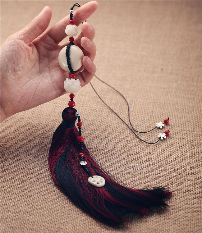 象牙果流苏高档挂饰品车用后视镜莲花藕片吊坠保平安