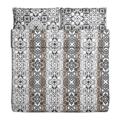 Ikea Prakttry King Duvet Cover and Pillowcases Gray White Beige 803.223.65