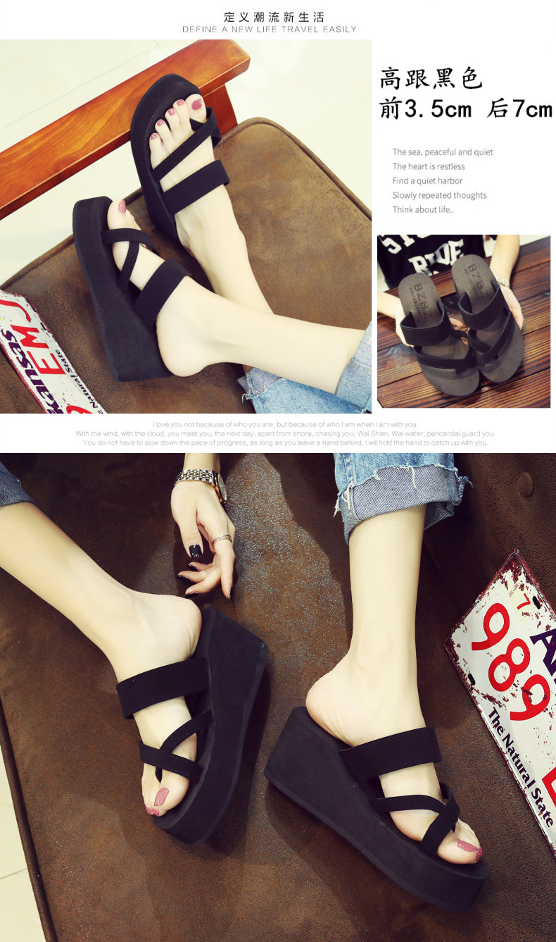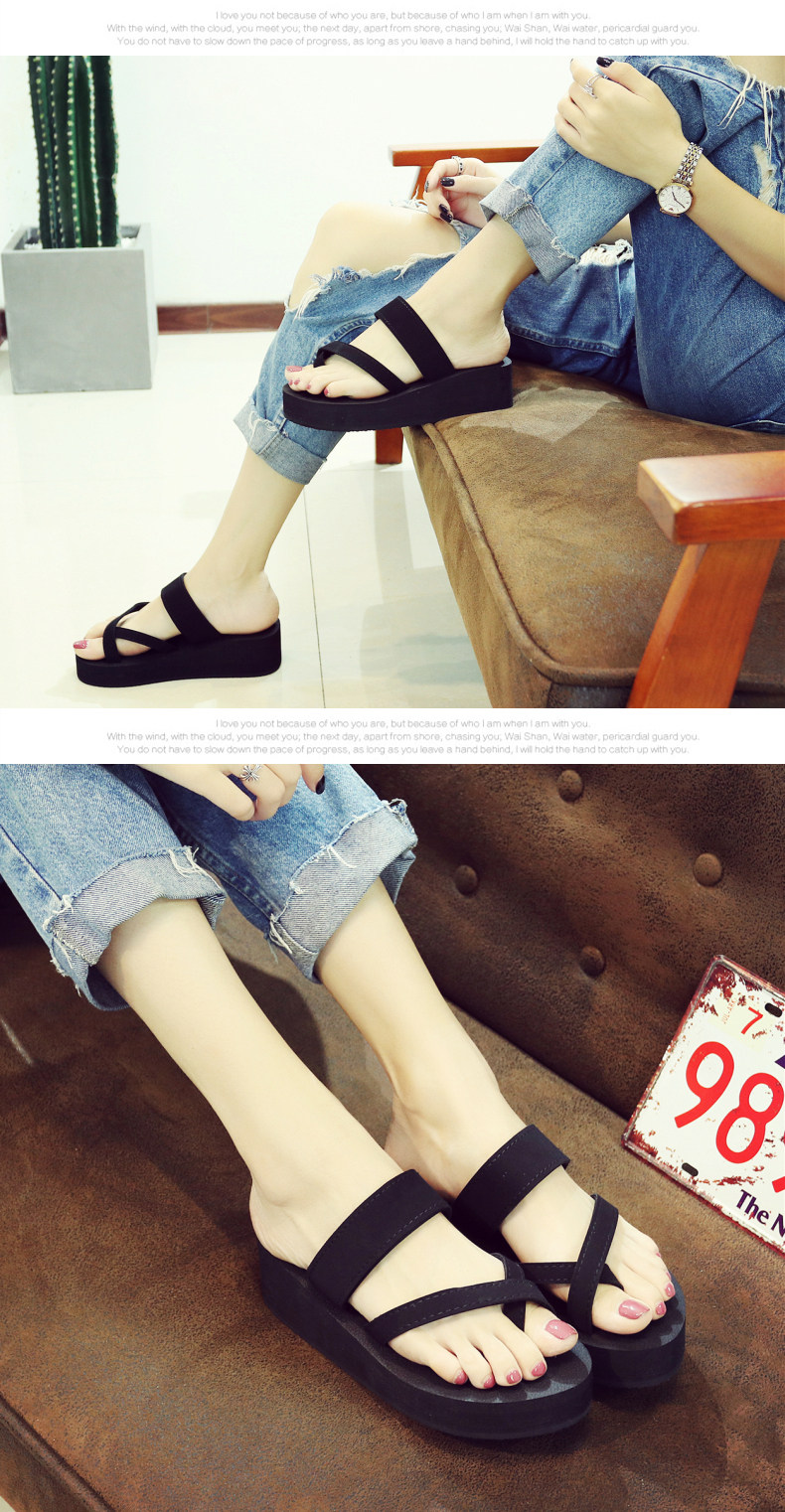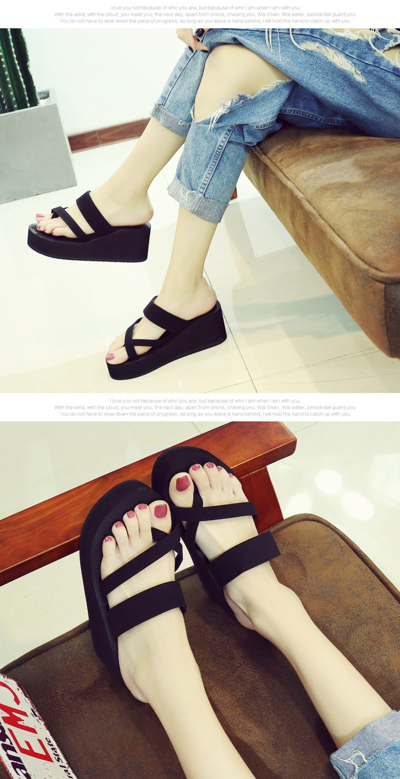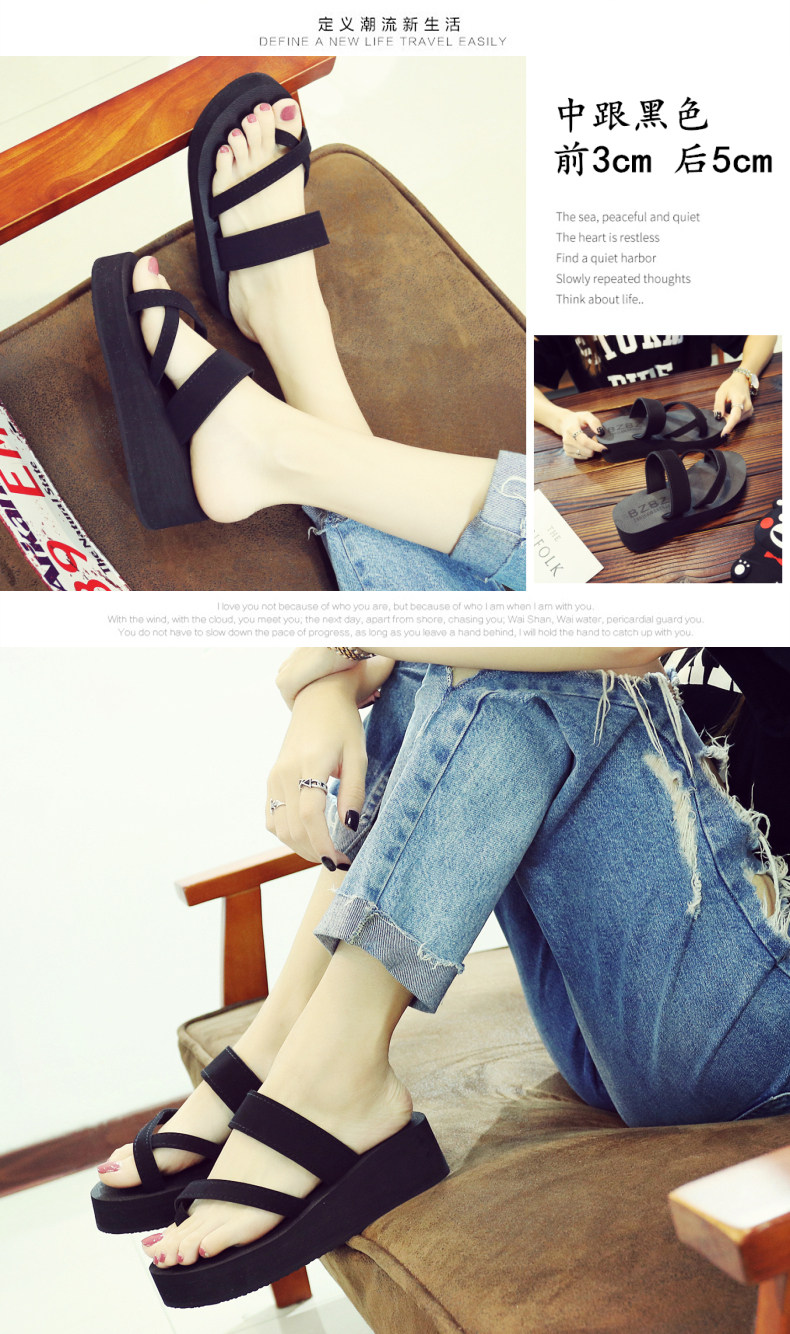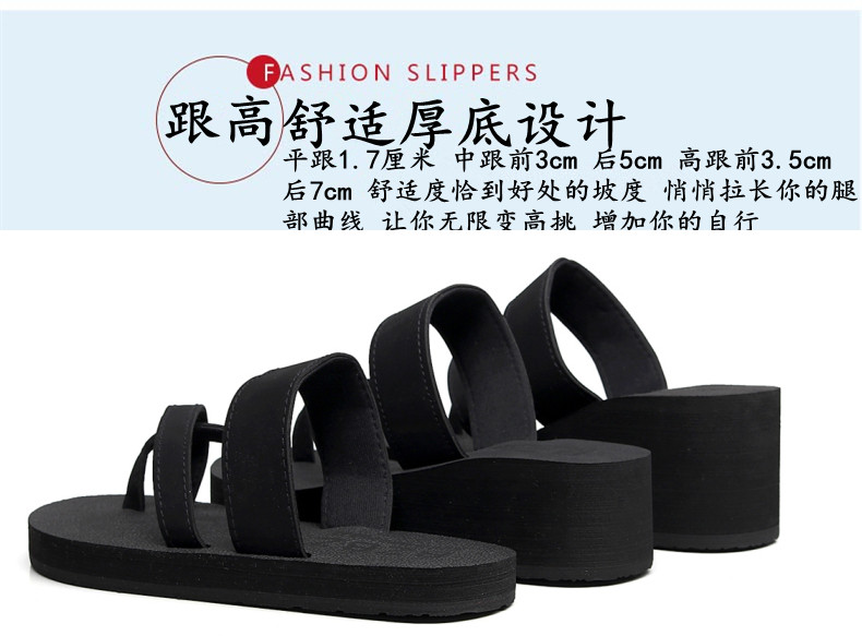 简约时尚松糕凉拖女夏平底人字拖坡跟厚底夹拖外穿高跟沙滩鞋