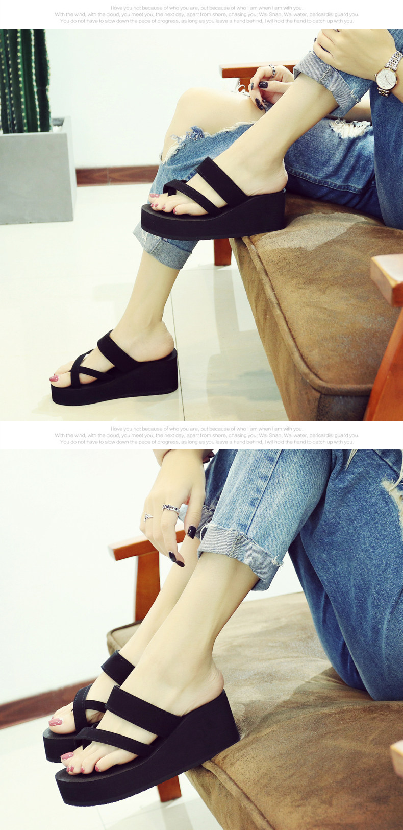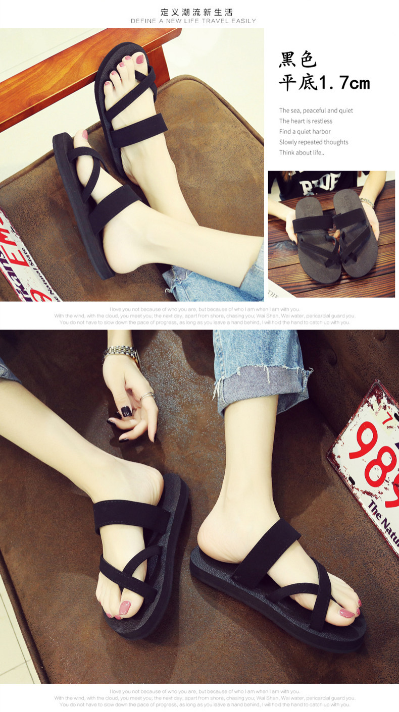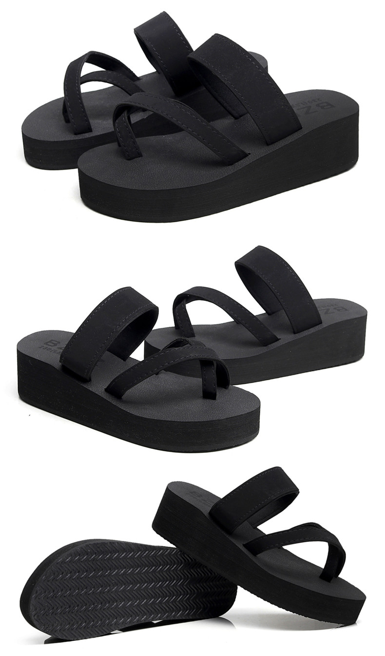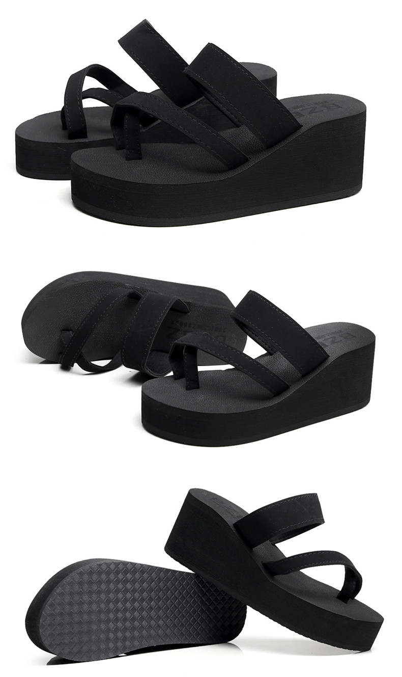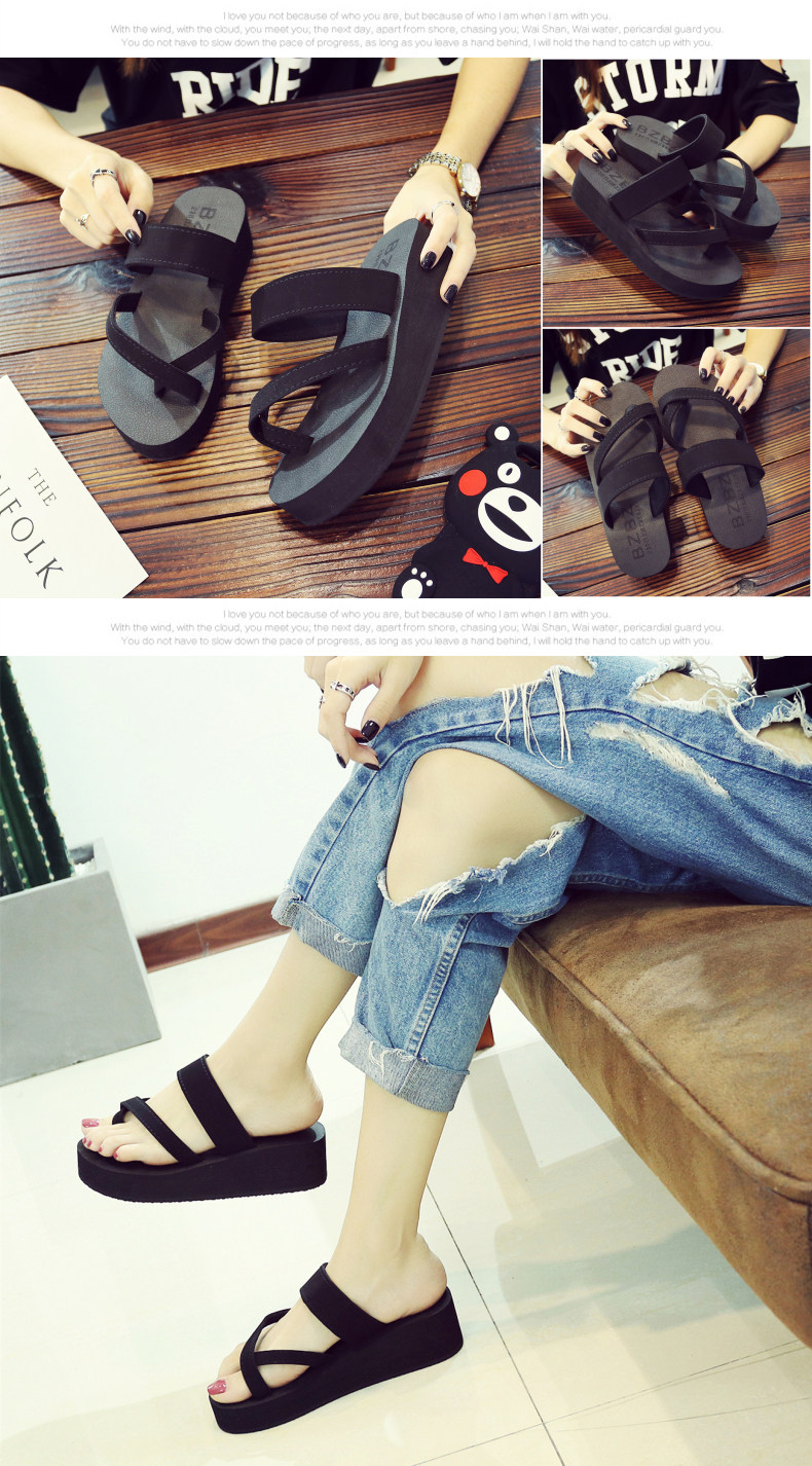 简约时尚松糕凉拖女夏平底人字拖坡跟厚底夹拖外穿高跟沙滩鞋