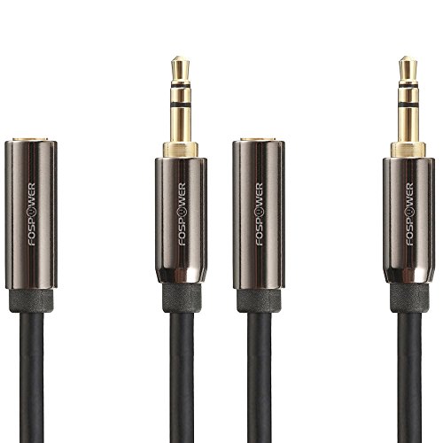 FosPower (3 Feet - 2 Pack) 3.5mm Male to 3.5mm Female Stereo Audio Extension Cable Adapter [24K Gold Plated Connectors] for Apple, Samsung, Motorola, HTC, Nokia, LG, Sony & More